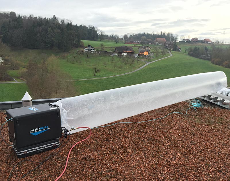 AEROSEAL ist eine bahnbrechende Technologie zur nachträglichen Abdichtung bereits installierter Luftleitsysteme von innen heraus und kann daher bei Luftleitungen im Bestand sowie bei neu montierten Systemen angewendet werden.